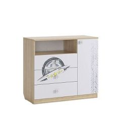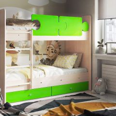 Функциональная зона под спальным местом оборудована широкой рабочей поверхностью из ЛДСП и полками, что позволит сэкономить пространство в помещении.
