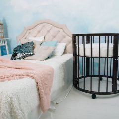 Её можно использовать как качалку и в последствии оснастить колесиками. У этой кроватки есть ящик для хранения.