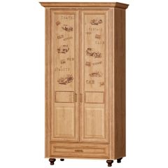 Фурнитура: ручка металлическая под бронзу , направляющие шариковые полного выдвижения, ножки пластмассовые на металлической опоре, петли, амортизаторы ударов, штанга для одежды в комплекте