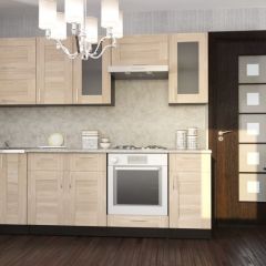 • Фасады навесных шкафов не комплектуются ручками. Открываются за нижний торец фасада, за счёт приподнятых относительно боковин нижних вязок.