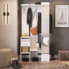 Штанги для плечиков, крючков для одежды, открытой ниши для обуви, полок под мелочи, зеркала, полки для головных уборов, выдвижного ящика.