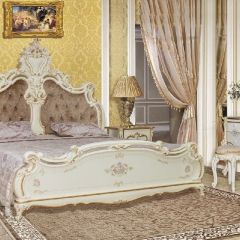Спальня для респектабельного интерьера. Фасады с простым резным рисунком, кровать с красивым изголовьем. Дизайн спальни направлен на создание спокойной атмосферы для отдыха и сна.