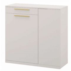 «кремовый белый», который уже успел полюбиться клиентам фабрики по серии «Марлен», но отличается более современным дизайном. В нем отсутствуют замысловатые декоративные элементы и колонны, на первый план выходят прямые линии. Украшением комплекта служат оригинальные итальянские ручки золотистого цвета. В оформлении фасадов комода сделан необычный ход. Некоторые линии, делящие ящики на, казалось бы, самостоятельные отсеки, на самом деле являются фрезеровкой. Кровать оснащена мягким тканевым изголовьем, что является сейчас безусловным трендом.